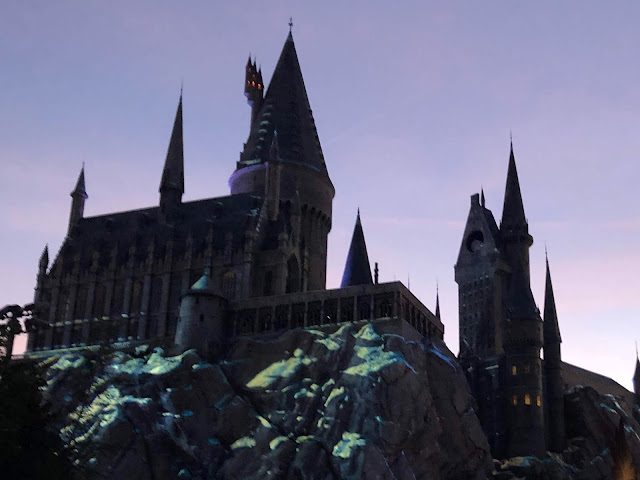 Catch the Nighttime Light Show at Hogwarts Castle. The show starts at sunset and plays every 15 minutes or so. We watched it from the bridge that connects Hogsmeade with Jurassic World, which was a great location.